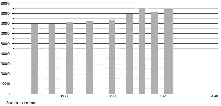 - ↑ Population selon le sexe et l'âge quinquennal de 1968 à 2013 - Recensements harmonisés - Séries départementales et communales