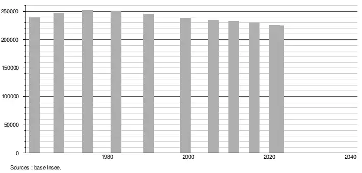 - ↑ Population selon le sexe et l'âge quinquennal de 1968 à 2013 - Recensements harmonisés - Séries départementales et communales
