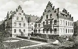 Karalene (de) est le nom de l'école de formation des enseignants qui émerge du domaine d'Augstkummetschen. C'est à près de douze kilomètres au nord-est d'Insterbourg. Au cours de son séjour en Prusse-Orientale, la reine Louise reconnaît le besoin d'éducation de la population prussienne-lituanienne et encourage la formation d'enseignants du primaire de langue lituanienne lors d'un séminaire spécial. En 1811, l'État prussien achète le bâtiment résidentiel du domaine de Wolfshagen, ainsi que douze acres de parc et 14 acres de champs, et construit un établissement d'enseignement, à partir duquel le collège des enseignants se développe. Son nom Karalene (lit. karaliene : reine) rappelle Louise. Karalene en 1815 compte soixante habitants vivant dans un seul foyer. Après la retraite du directeur Preuss en 1857, il est suivi en 1859 par le professeur de séminaire Karl Benjamin Zacharias[9]. La congrégation protestante fondée pour le séminaire des enseignants tient ses offices dans l'auditorium du séminaire. En 1860, elle reçoit des objets sacrés de l'orphelinat royal de Königsberg. Les responsables du séminaire agissent en tant que pasteurs. Karalene tient ses propres registres paroissiaux de 1860 à 1919. En 1871, le collège des enseignants se compose de trois bâtiments résidentiels dans lesquels 136 résidents vivent dans huit ménages, dont 107 hommes. Tous les résidents sont des citoyens prussiens et des protestants. Avec la dissolution du collège de formation des enseignants en 1924, l'église s'éteint également. La ville d'Insterbourg utilise le bâtiment comme maison de repos et de retraite pour enfants. En 1939, Karalene et Nausseden sont regroupées sous le nom de Luisenberg.