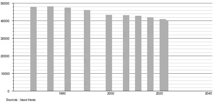 - ↑ Population selon le sexe et l'âge quinquennal de 1968 à 2013 - Recensements harmonisés - Séries départementales et communales