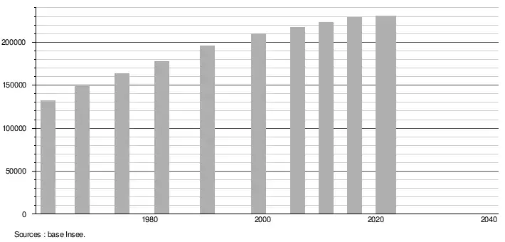 - ↑ Population selon le sexe et l'âge quinquennal de 1968 à 2013 - Recensements harmonisés - Séries départementales et communales