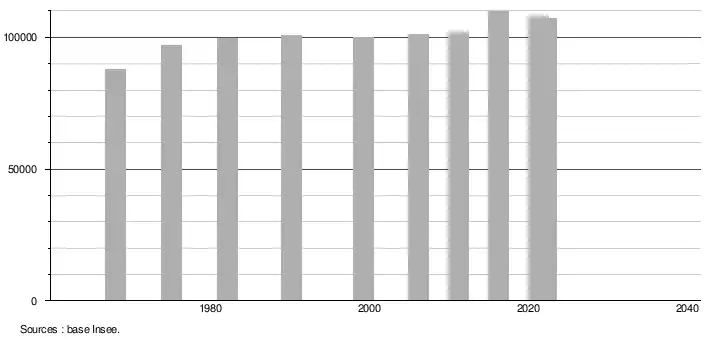 - ↑ Population municipale de référence en vigueur au 1er janvier 2025, millésimée 2022, définie dans les limites territoriales en vigueur au 1er janvier 2024, date de référence statistique : 1er janvier 2022.