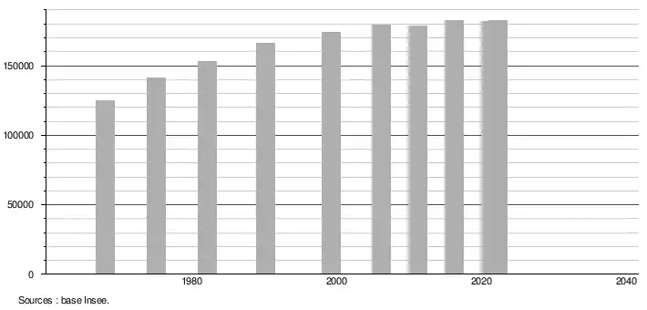 (Sources : Base Insee, population sans doubles comptes à partir de 1962[2] puis population municipale à partir de 2006[3].)