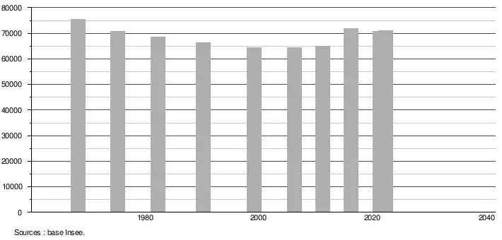 - ↑ Population selon le sexe et l'âge quinquennal de 1968 à 2013 - Recensements harmonisés - Séries départementales et communales
