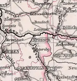 En 1742, l'arrondissement de Krossen est formé à partir de l'ancien duché silésien de Crossen (de) et incorporé à la Nouvelle-Marche brandebourgeoise[1].