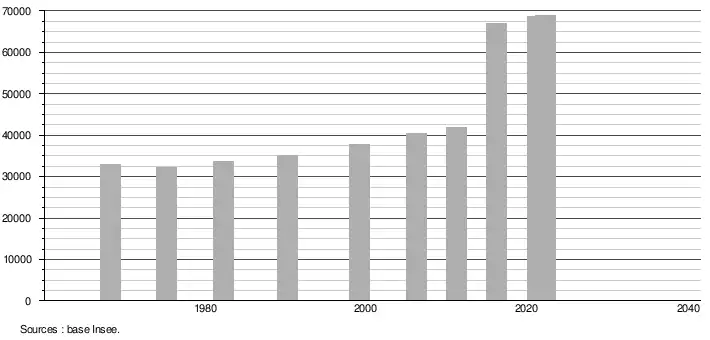 - ↑ Population selon le sexe et l'âge quinquennal de 1968 à 2013 - Recensements harmonisés - Séries départementales et communales