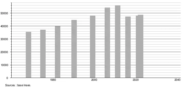 (Sources : Base Insee, population sans doubles comptes à partir de 1962[4] puis population municipale à partir de 2006[5].)
