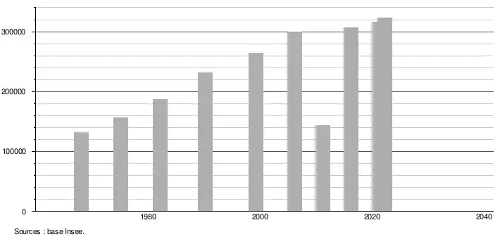 - ↑ Population selon le sexe et l'âge quinquennal de 1968 à 2013 - Recensements harmonisés - Séries départementales et communales
