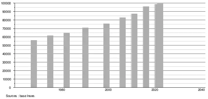 (Sources : Base Insee, population sans doubles comptes à partir de 1962[4] puis population municipale à partir de 2006[5].)