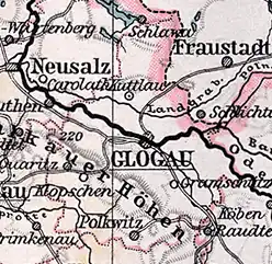 Dans la réforme des arrondissements du 1er janvier 1820 dans le district de Liegnitz, l'arrondissement de Glogau donne la ville de Schlawa et les villages de Elevator, Beitsch, Deutsch Tarnau, Goihle, Groß Würbitz, Hammer, Josephshof, Kattersee, Klein Würbitz, Köllmchen, Krolckwitz, Laubegast, Liebenzig, Malschwitz, Mäusewinkel, Neuckersdorf, Nieder Bäsau, Ober Bäsau, Pürschkau, Rädichen, Schlawa, Sperlingswinkel et Zöbelwitz à l'arrondissement de Freystadt-en-Basse-Silésie, les villages de Grunwald, Jäschane, Kolzig, Lipke, Neu Otternstädt et Schlabrendorf à l'arrondissement de Grünberg-en-Silésie et les villages de Böcken, Eisemost, Friedrichswalde, Gühlichen, Heinzendorf, Herbersdorf, Neudorf, Neuguth, Nieder Gläsersdorf, Ober Gläsersdorf, Parchau et Petersdorf à l'arrondissement de Lüben[5].