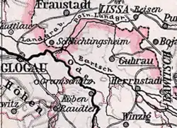 - ↑ Amtsblatt der Königlichen Regierung zu Breslau 1817, Nr. XLV : Neue Eintheilung und Abgränzung der Kreise im Breslauer Regierungs-Departement vom 31. Oktober 1817, Breslau (Digitalisat), p. 476 ff.