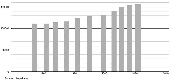 - ↑ Population municipale de référence en vigueur au 1er janvier 2025, millésimée 2022, définie dans les limites territoriales en vigueur au 1er janvier 2024, date de référence statistique : 1er janvier 2022.