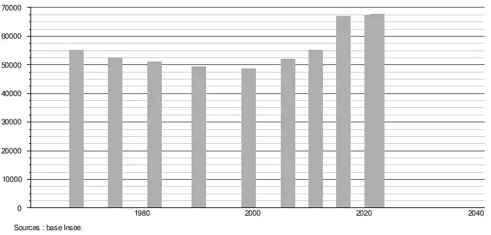 (Sources : Base Insee, population sans doubles comptes à partir de 1962[3] puis population municipale à partir de 2006[4].)