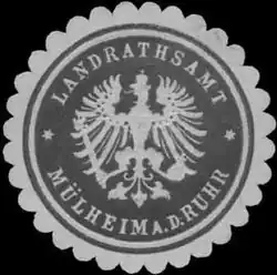 Les villes de Ruhrort et Dinslaken ainsi que les mairies de Beeck, Dinslaken-Campagne, Duisbourg-Campagne, Gahlen, Götterswickerhamm, Meiderich et Sterkrade sont séparés de l'arrondissement le 1er juillet 1887 et forme le nouveau arrondissement de Ruhrort (de) [5]. L'arrondissement de Mülheim a désormais les divisions administratives suivantes[3] :