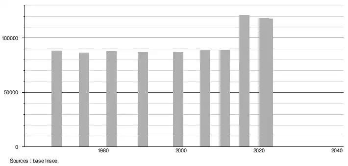 (Sources : Base Insee, population sans doubles comptes à partir de 1962[3] puis population municipale à partir de 2006[4].)