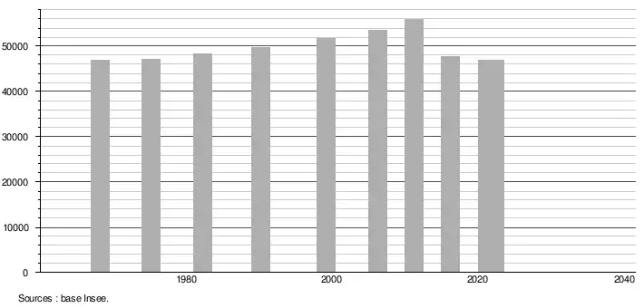- ↑ Population selon le sexe et l'âge quinquennal de 1968 à 2013 - Recensements harmonisés - Séries départementales et communales
