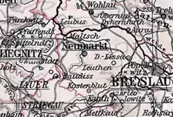 Le 1er avril 1928, les communes rurales de Deutsch Lissa (de) et Rathen et les districts de domaine de Deutsch Lissa (en partie) et Rathen de l'arrondissement de Neumarkt sont incorporés dans l'arrondissement urbain de Breslau. Le 30 septembre 1929, tous les districts de domaine de l'arrondissement de Neumarkt sont dissous et attribués aux communes voisines conformément à l'évolution du reste de la Prusse.