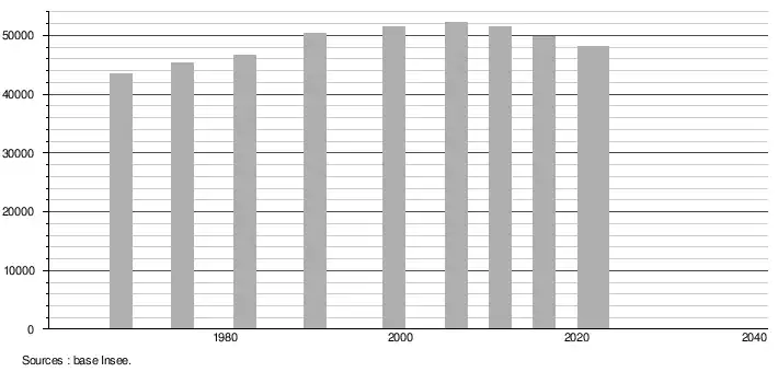- ↑ Population selon le sexe et l'âge quinquennal de 1968 à 2013 - Recensements harmonisés - Séries départementales et communales