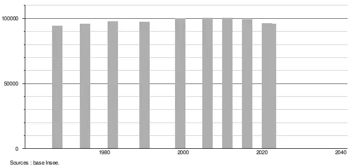 (Sources : Base Insee, population sans doubles comptes à partir de 1962[2] puis population municipale à partir de 2006[3].)