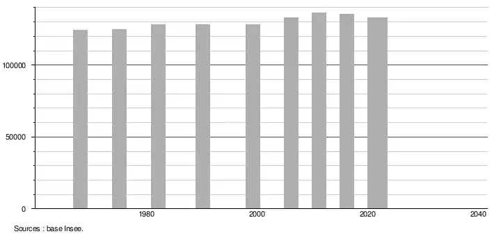 - ↑ Population selon le sexe et l'âge quinquennal de 1968 à 2013 - Recensements harmonisés - Séries départementales et communales