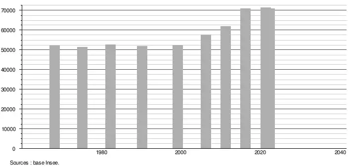 (Sources : Base Insee, population sans doubles comptes à partir de 1962[4] puis population municipale à partir de 2006[5].)
