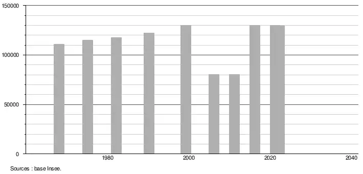 - ↑ Population selon le sexe et l'âge quinquennal de 1968 à 2013 - Recensements harmonisés - Séries départementales et communales