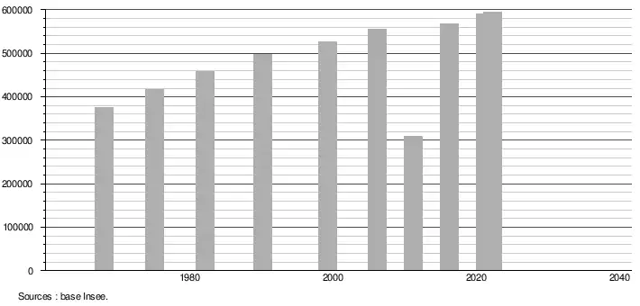 (Sources : Base Insee, population sans doubles comptes à partir de 1962[2] puis population municipale à partir de 2006[3].)