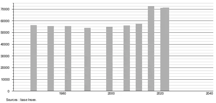 - ↑ Population municipale de référence en vigueur au 1er janvier 2025, millésimée 2022, définie dans les limites territoriales en vigueur au 1er janvier 2024, date de référence statistique : 1er janvier 2022.
