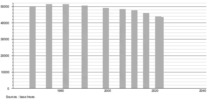 - ↑ Population selon le sexe et l'âge quinquennal de 1968 à 2013 - Recensements harmonisés - Séries départementales et communales