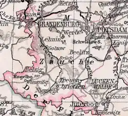 - ↑ Amtsblatt der Königlichen Regierung zu Potsdam : Kreiseinteilung des Regierungsbezirks Potsdam, vol. 12, Potsdam, (Digitalisat), p. 103