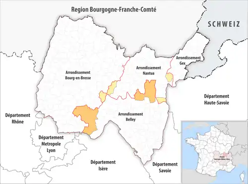 - ↑ Arrêté préfectoral no 16-542 du 21 décembre 2016 portant modification des limites des arrondissements du département de l'Ain, sur prefectures-regions.gouv.fr