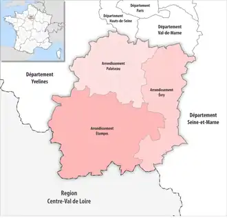 - Au , une réorganisation des arrondissements est effectuée, pour mieux intégrer les récentes modifications des intercommunalités; 3 communes sur 196 sont affectées : 3 passent d'Étampes vers Palaiseau[5].