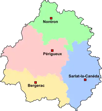 Depuis 1926, le département français de la Dordogne est subdivisé en quatre arrondissements.