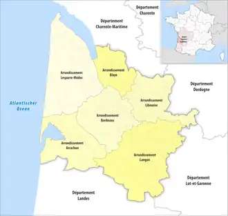 | Arrondissement de Langon | 333 | 2 644,30 | 134 929 (2022) | 51 | |