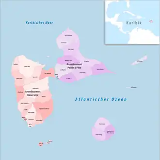 En 1946, la Guadeloupe devient département d'outre-mer avec trois arrondissements : Basse-Terre, Pointe-à-Pitre, Saint-Martin-Saint-Barthélemy.