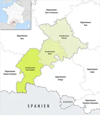 Le département français de la Haute-Garonne est subdivisé en trois arrondissements.