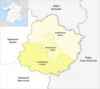 - 2006 : redécoupage des arrondissements de la Sarthe[1]. L'arrondissement du Mans compte désormais 12 cantons (-11), l'arrondissement de Mamers compte 16 cantons (+6) et celui de La Flèche a 12 cantons (+5).