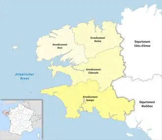 - ↑ Préfecture de la région Bretagne, Arrêté du portant modification des limites territoriales des arrondissements du Finistère, Rennes, (lire en ligne)