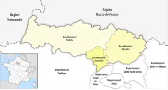 | Arrondissement de Pontoise | 953 | 766,00 | 354 726 (2022) | 463 | |