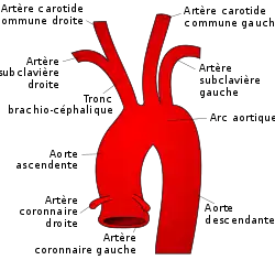 Arc aortique avec ses collatérales. On observe les deux origines des artères carotides communes droite et gauche.