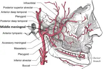 Elle prend son origine dans le premier segment de l'artère maxillaire provenant elle-même du système carotidien externe[1].
