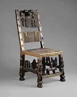 Siège royal de Cana. Avant 1893. Bois, pigment, H. 1 m.- Trône qui appartenait au roi Ghézo. Art du Dahomey, culture Fon. 1818-1848. Bois, métal, 199 x 122 × 88 cm, 130 kg. Paris, Musée du Quai Branly[55]