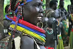 L'art africain traditionnel, ou plus exactement l'art de l'Afrique[7] antérieurement à l'art moderne et contemporain de l'Afrique, se manifeste sous une multitude d'arts, souvent associés. La musique et la danse, la réalisation de nombreux types d'objets, sculptés, éventuellement enduits, peints ou produits par assemblage de nombreux éléments, ainsi que les arts du corps (coiffures, parures et peintures corporelles, scarifications, tatouages[8],[9]) mais aussi des objets faits à la main, que l'on peut estimer de stricte utilité et même s'ils ne comportent aucune décoration, peuvent présenter un caractère artistique dans l'Afrique traditionnelle[10]. Mais « l'appréciation de « l'art africain » [la sculpture, considérée en dehors de tout contexte culturel] est un phénomène du XXe siècle associé à des artistes et des collectionneurs européens. [...] La notion de « l'art africain » était plus ou moins étrangère aux sociétés d'origine des objets. »[11] Aussi la contextualisation culturelle de l'art africain dans son cadre historique d'origine précis reste un objectif au XXIe siècle.
