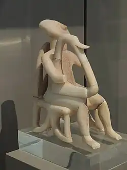 La majorité de ces idoles, cependant, sont des représentations hautement stylisées de formes humaines féminines, ayant typiquement une forme plane, qualité géométrique qui présente une ressemblance saisissante avec l'art moderne de notre époque. Pourtant il se pourrait que cela soit une mauvaise compréhension dans la mesure où les idoles étaient, à l'origine, peintes de couleurs vives[7]. Une majorité de ces figurines sont de genre féminin, représentent un nu, et ont les bras croisés sur le ventre. La plupart des auteurs qui ont considéré ces artefacts d'un point de vue archéologique ou psychologique ont assuré qu'il s'agissait de représentation d'une déesse mère dans la tradition de celles du Paléolithique, par exemple la Vénus de Willendorf[8]. Bien que quelques archéologues appuient cette thèse[9], cette interprétation n'est généralement pas celle de la plupart des archéologues parmi lesquels aucun consensus ne s'impose. Ils interprètent ces figurines tantôt comme des idoles des dieux, des images de la mort, des poupées pour enfants ou encore comme ayant d'autres significations. Une spécialiste suppose qu'elles « seraient plus que des poupées et probablement moins que de sacrosaintes idoles. »[10]