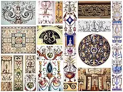 Le terme se rapporte d'abord aux compositions décoratives réalisées par les artistes italiens de la Renaissance, en imitation de décorations antiques similaires.