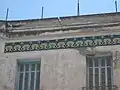 On note que l'architecte a introduit des frises de faïences d'inspiration locale dans la partie supérieure des bâtiments[4].