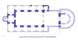 Bessingham Sainte-Marie (tour), Sainte-Marie de Reculver, Brixworth, Gloucester Saint-Oswald, Winchester Cathédrale, Douvres Sainte-Marie-du-Château, Breamore Sainte-Marie, Barnack, Barton-on-Humber Saint-Pierre, Earls-Barton, Sompting Sainte-Marie