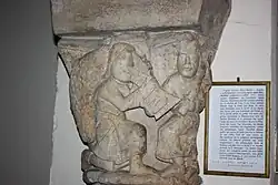 | Tentation | Barret | chapiteau du portail (Ève et le serpent) |
