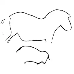 - Grotte d'Atxurra: elle contient le plus grand sanctuaire rupestre paléolithique du Pays Basque, étant également un site de référence au niveau international[6]. Il se compose d'au moins 113 figures animales réparties dans 14 secteurs [7], principalement des bovidés et des chevaux, mais aussi des chèvres, des aurochs et des cerfs[8], et d'une figure mystérieuse difficile à caractériser (elle combine les caractéristiques d'un ours et d'un renne).)[9]. La technique presque exclusive est la gravure dans différentes variantes, attribuées au Magdalénien moyen/supérieur, daté d'il y a environ 14 500-12 500 ans.