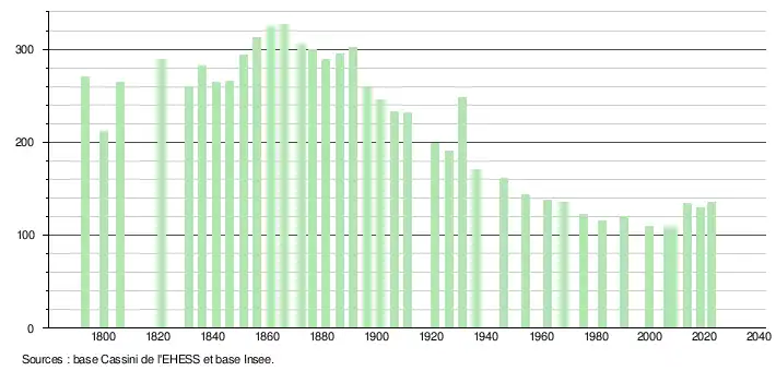 - ↑ Fiches Insee - Populations de référence de la commune pour les années 2006, 2007, 2008, 2009, 2010, 2011, 2012, 2013, 2014, 2015, 2016, 2017, 2018, 2019, 2020, 2021 et 2022.